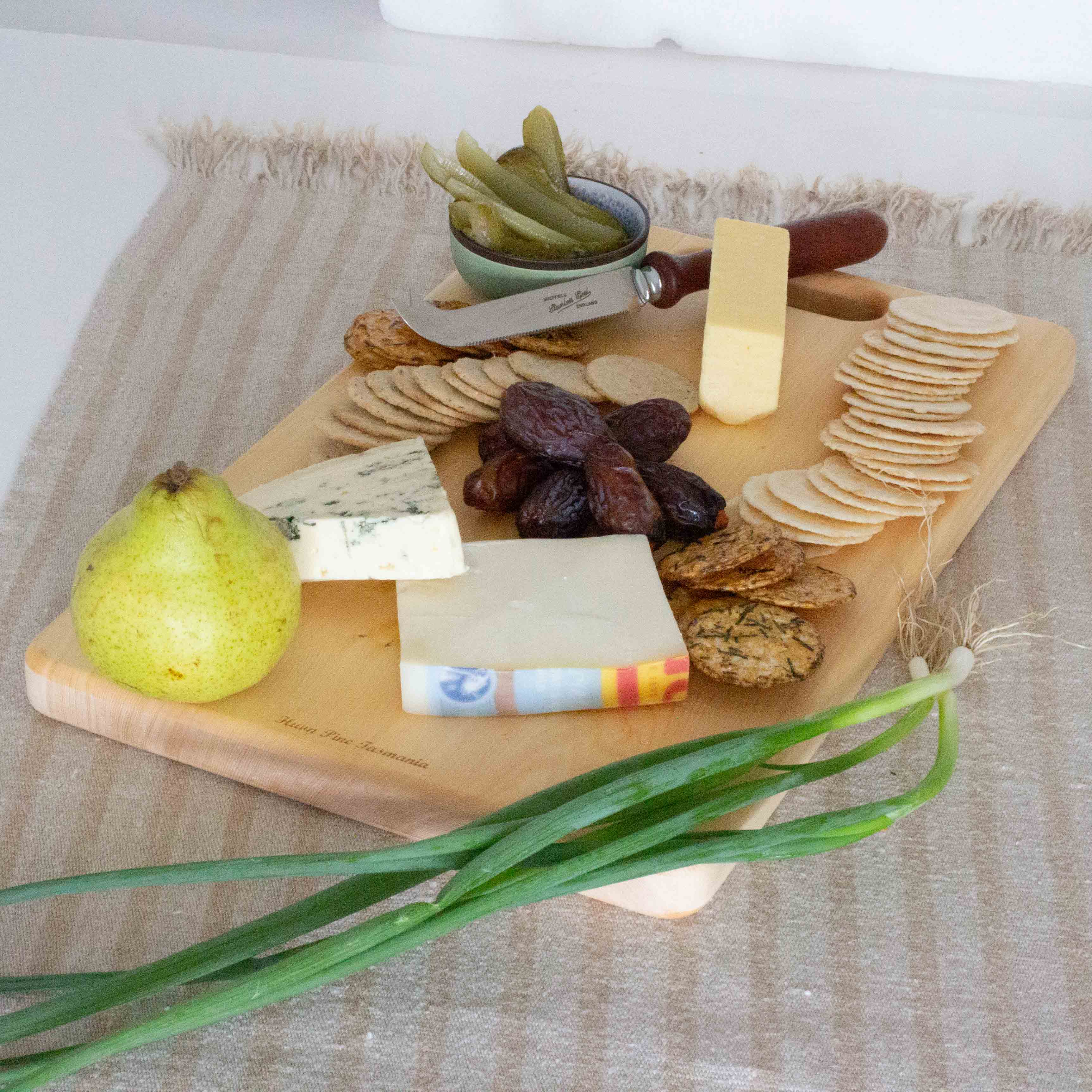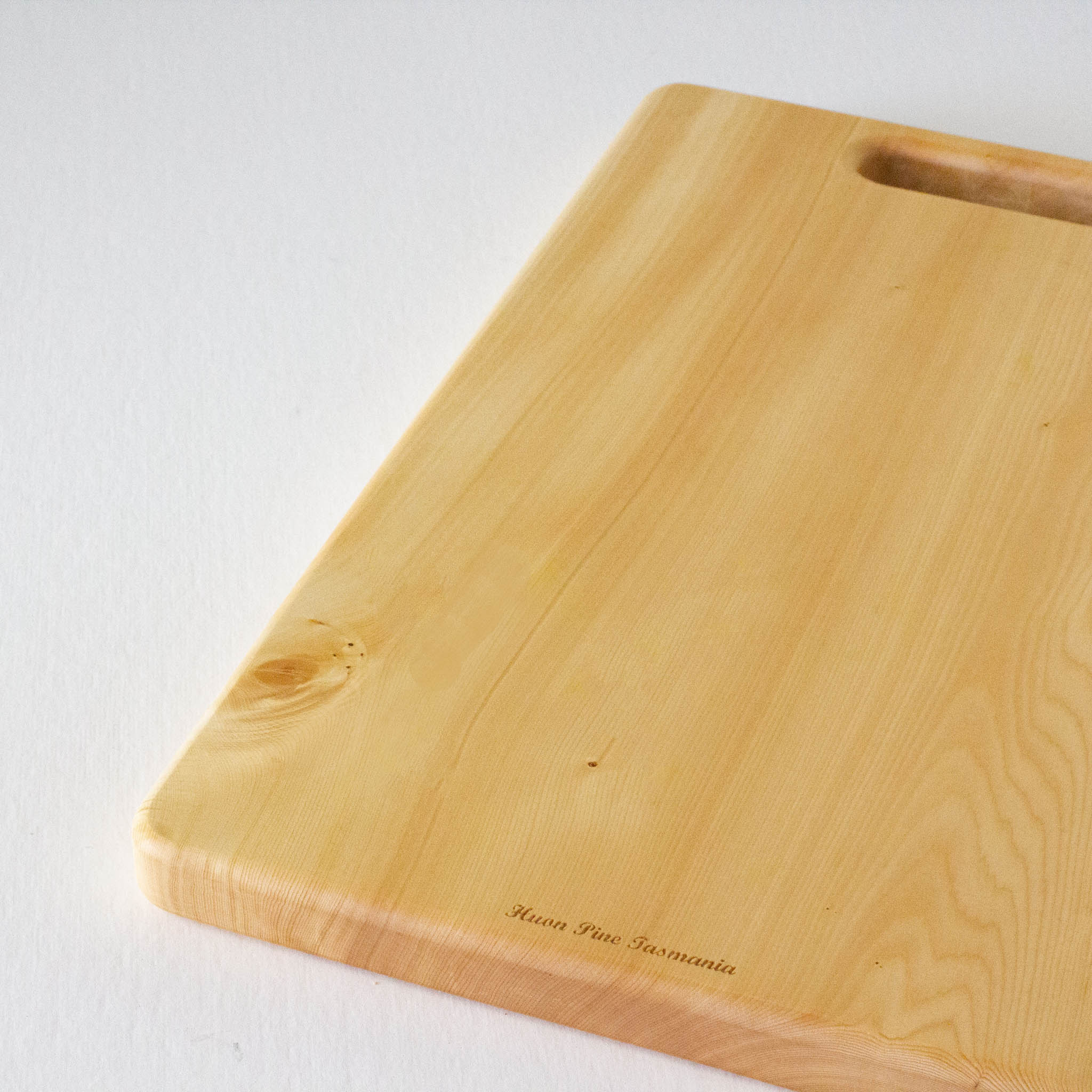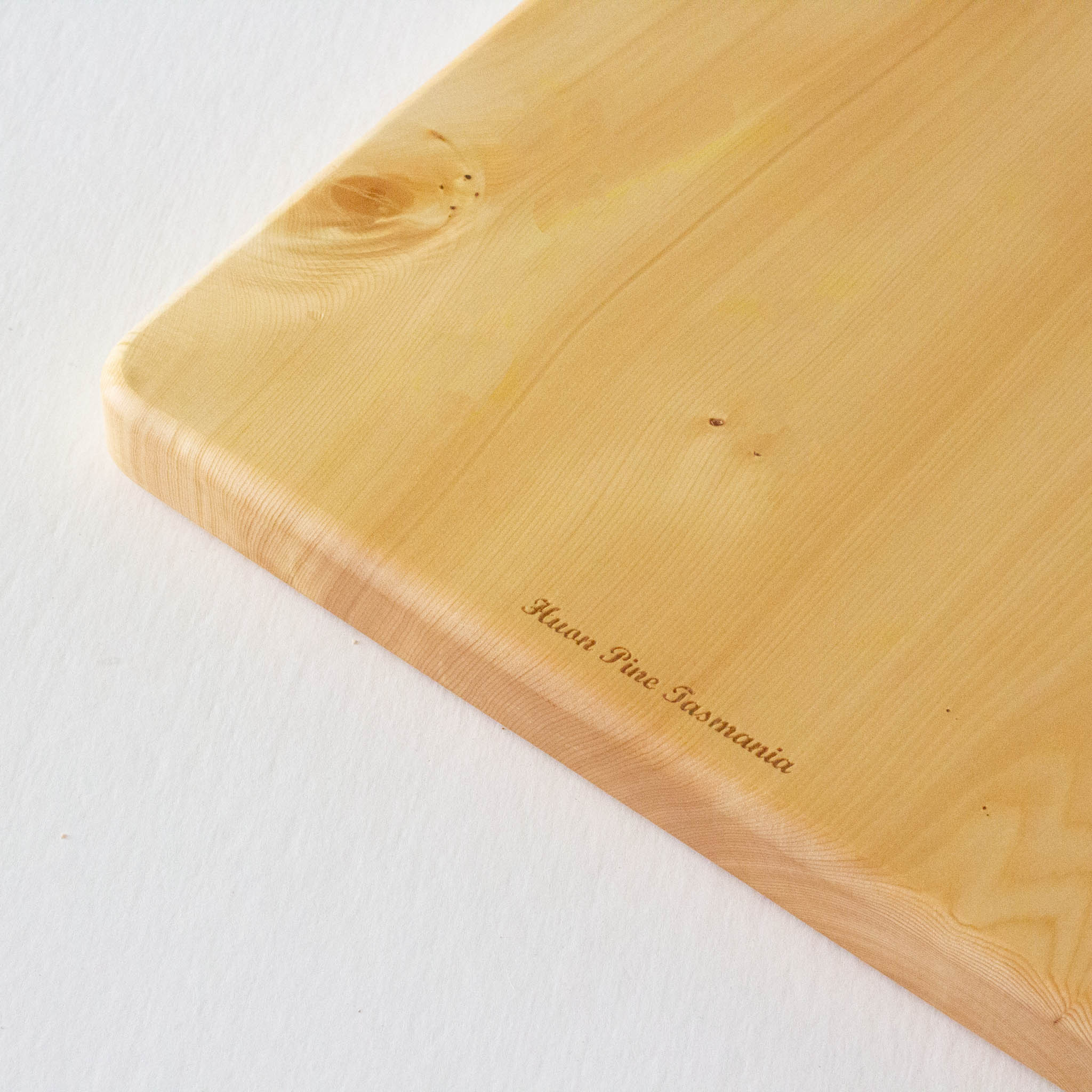 This simple and elegant cheese or bread board has been crafted from one solid piece of Huon Pine, a timber famous for its fine grain, buttery texture and moisture resistant qualities. The board has a comfy cut-out for ease of handling and is pre-seasoned with a food safe finish. Huon Pine is a perfect timber for use with food because of its fine grain and water resistance which means you can clean it without it affecting the timber. Care instructions are provided with the board which makes a wonderful gift for housewarmings, weddings or your foodie friends.